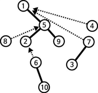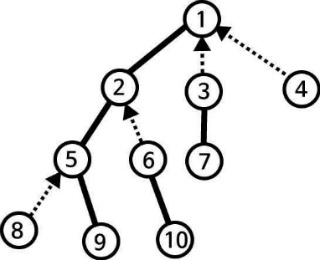 왼쪽 트리에서 (1, 2, 5, 9), (3, 7), (6, 10), (4), (8) 5개의 경로로 나뉘었는데, 각각의 경로는 깊이 순서로 Binary Search Tree가 되었고, 각 BST의 루트의 Parent 포인터는 해당 Path의 부모 노드를 가리키고 있는데, 반대 방향으로는 가리키고 있지 않습니다.